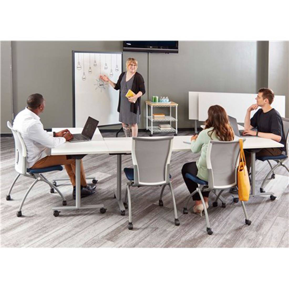 - The nesting capabilities and mobility of the flip table with T-leg base are perfect for classroom and training environments.